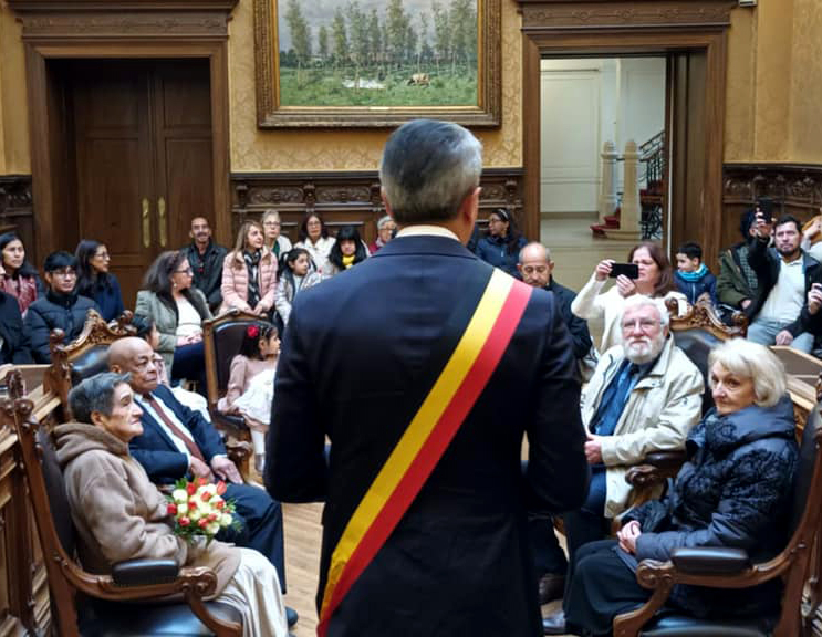 Samedi dernier, la commune de Saint-Josse a organisé une cérémonie pour célébrer les noces de diamant (60 ans de mariage) de Madame CORDOBA DE CAICEDO Silvia Marina & Monsieur CAICEDO BORRERO Pedro Vicente et les noces d'or (50 ans de mariage) de Madame CAPELLEMAN Chantal Ida Marie & Monsieur GIOGETTI Vittorio.