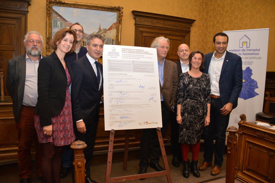 Les synergies ente les partenaires locaux ont été renforcées par la signature de la Convention de collaboration pour le lancement de la « Maison de l'Emploi ET de la Formation de Saint-Josse » en présence des partenaires : Actiris, Bruxelles-Formation, La Mission Locale pour l'emploi de Saint-Josse, l'ALE de Saint-Josse Tracé Brussel, la commune et le Cpas de Saint-Josse représentés par le Ministre de l'Emploi et de la Formation professionnelle, Didier Gosuin, le Bourgmestre de Saint-Josse, Emir Kir, l'Échevin de l'Emploi, Président de la Mission Locale pour l'Emploi de Saint-Josse et de l'ALE Saint-Josse, Philippe Boïketé, le Président du Cpas de Saint-Josse, Luc Frémal, la Directrice Générale Adjointe, Caroline Mancel, la Directrice de Bruxelles-Formation Olivia P'tito et le Directeur de Tracé Brussel, Steef Corijn.