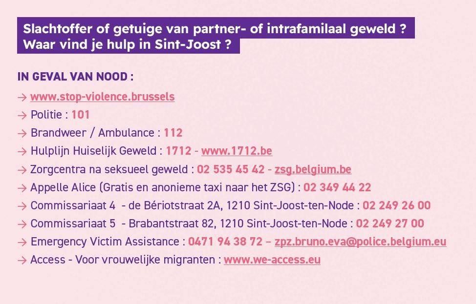 Sint-Joost heeft een kaart met alle noodnummers opgesteld. Aarzel niet om ernaar te vragen.